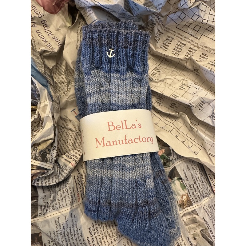 Handgestrickte Socken, 41% Wolle, 39% Baumwolle, 13% Polyamid, 7% Polyester, Grösse: 45-46, waschmaschinenfest