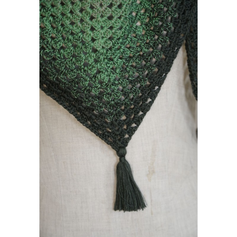 This hand-crocheted triangular shawl is a unique, handmade piece created with great attention to detail Thanks to its classic triangular shape, it can be worn in may ways - wrapped around the neck, draped over the shoulders, or styled as a fashionable accessory.